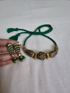 Discover terracotta necklace sets that embody artisan finesse. Featuring intricate motifs and adjustable strings, each set seamlessly fuses traditional inspiration with modern-day luxury.