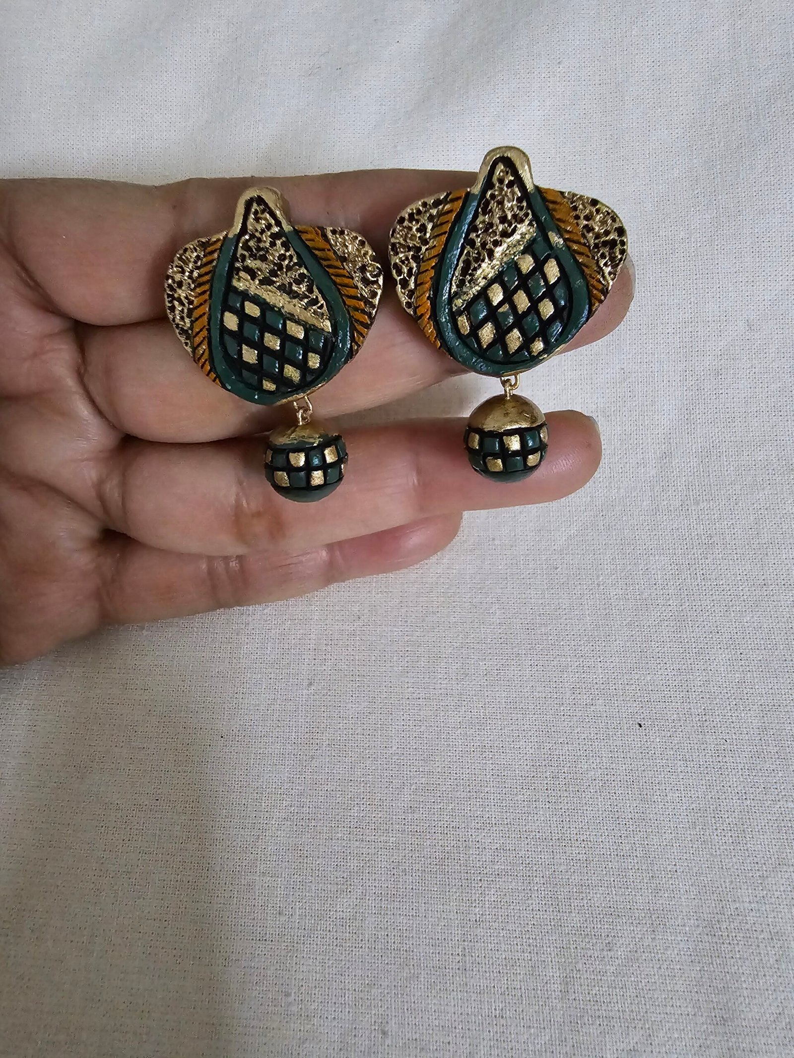 Each pair is meticulously handcrafted using terracotta techniques, ensuring uniqueness and artisanal character in every piece. Lightweight and comfortable at 4 cm in length, these earrings are designed to be worn all day without compromising on style or ease.