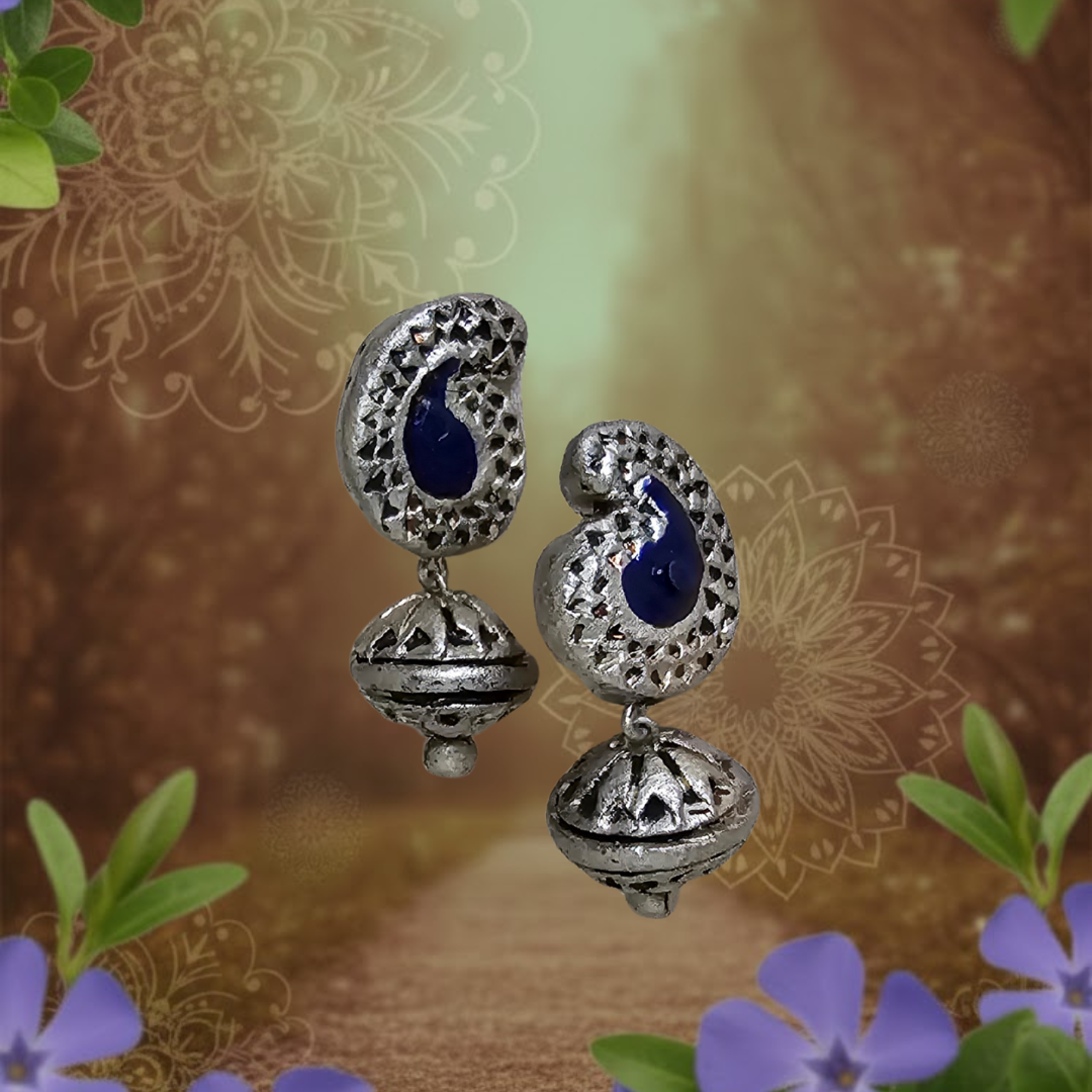 Measuring 4 cm, the Cavyn Luxe Studs offer a balanced presence, subtle yet striking. The elegant combination of silver and blue tones adds depth and character, enhancing the handcrafted textures and polished finish. Each pair is meticulously crafted to ensure unique detailing and slight variations that celebrate the authenticity of terracotta artistry.