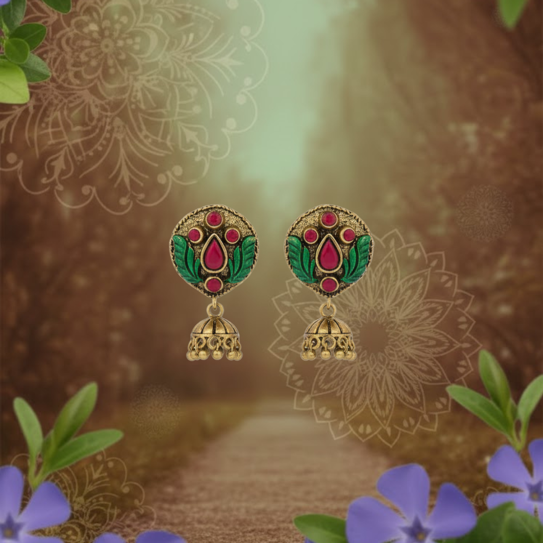 Featuring a compact 3 cm silhouette, the Célora Antique Studs are lightweight and comfortable, making them ideal for everyday wear. The rich palette of red, green, and gold tones evokes classic heritage charm, while the soft antique finish lends a sophisticated, vintage allure that never feels overwhelming.