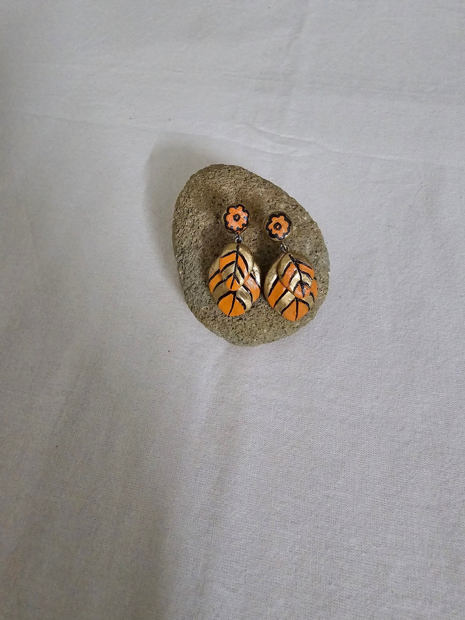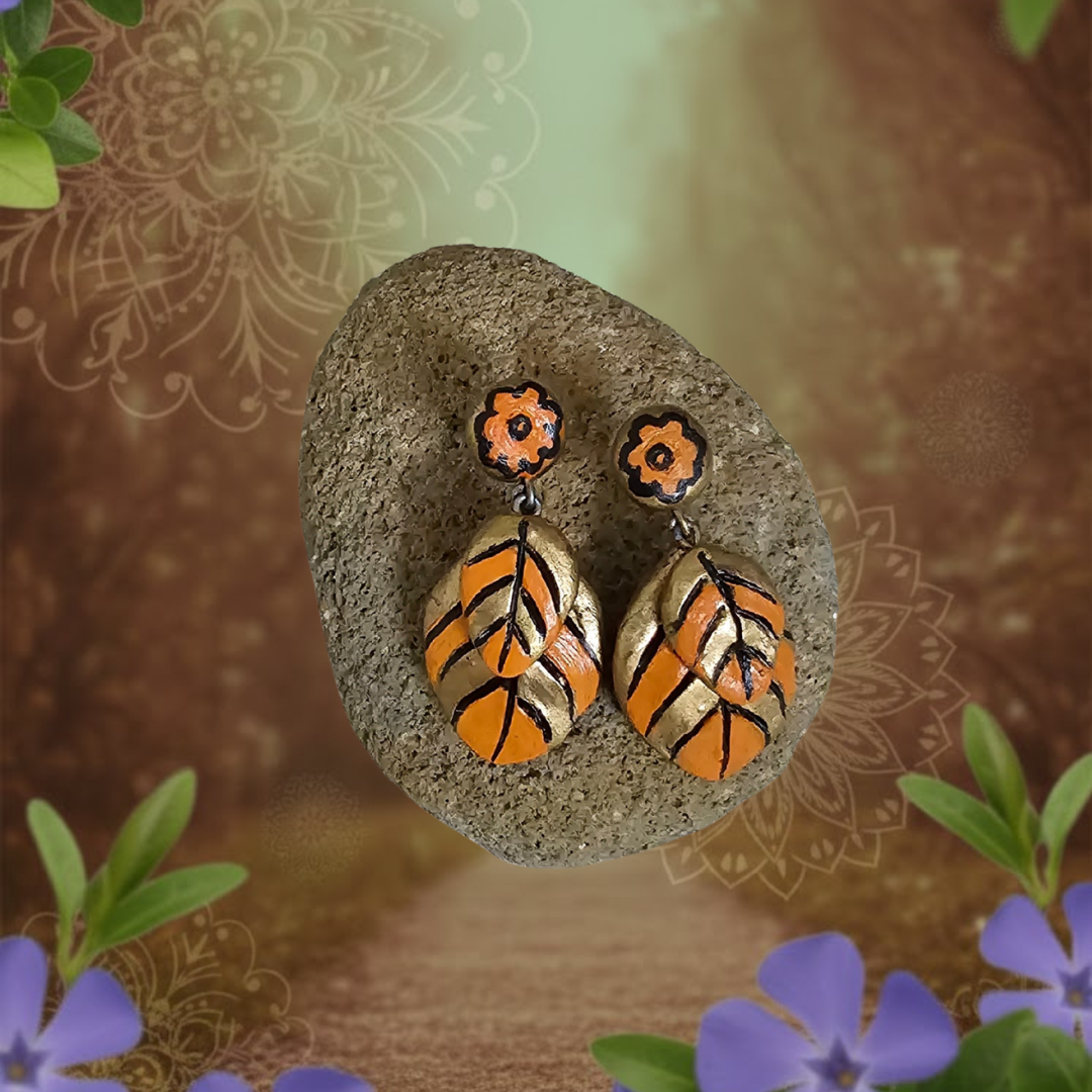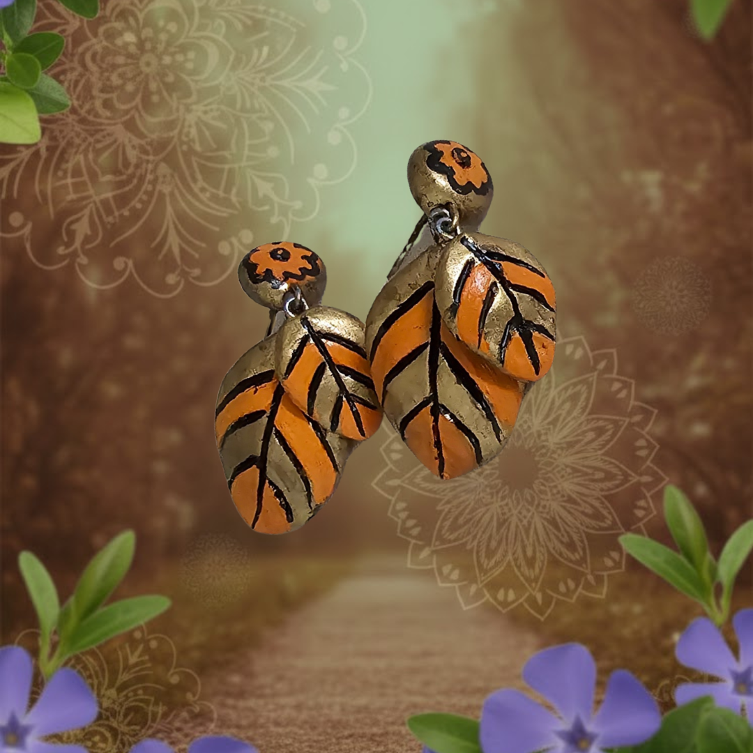 Measuring 4.4 cm, the Elyra Signature Earrings offer a balanced presence, eye-catching yet comfortable for daily wear. The warm palette of orange, gold, and black tones adds depth and versatility, enhancing the earrings’ subtle textures and soft antique finish. Each pair is carefully handcrafted, ensuring unique detailing and slight variations that celebrate the authenticity of terracotta artistry.