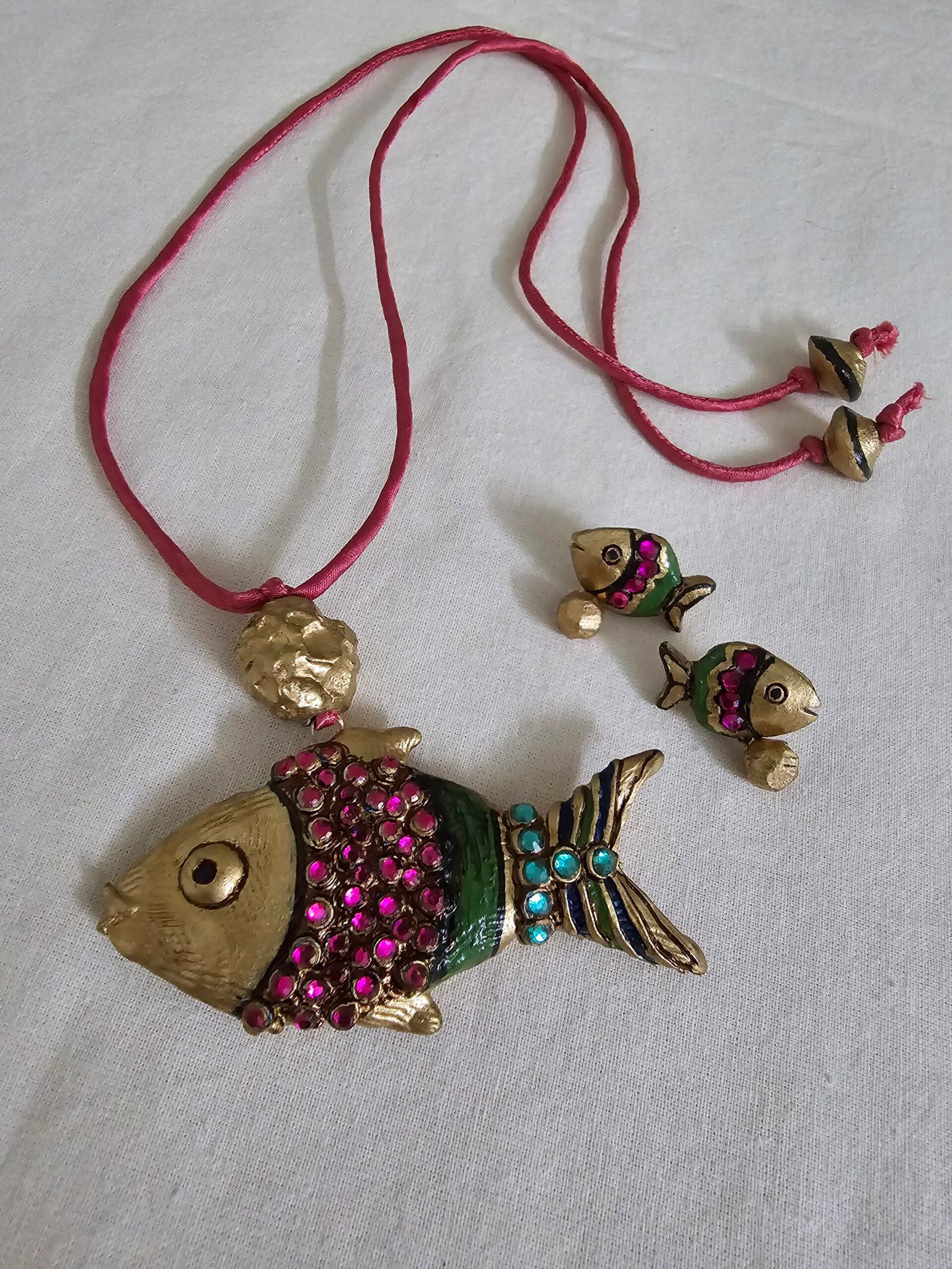 Distinct craftsmanship and class, Prestige terracotta necklace set with bold craftsmanship.