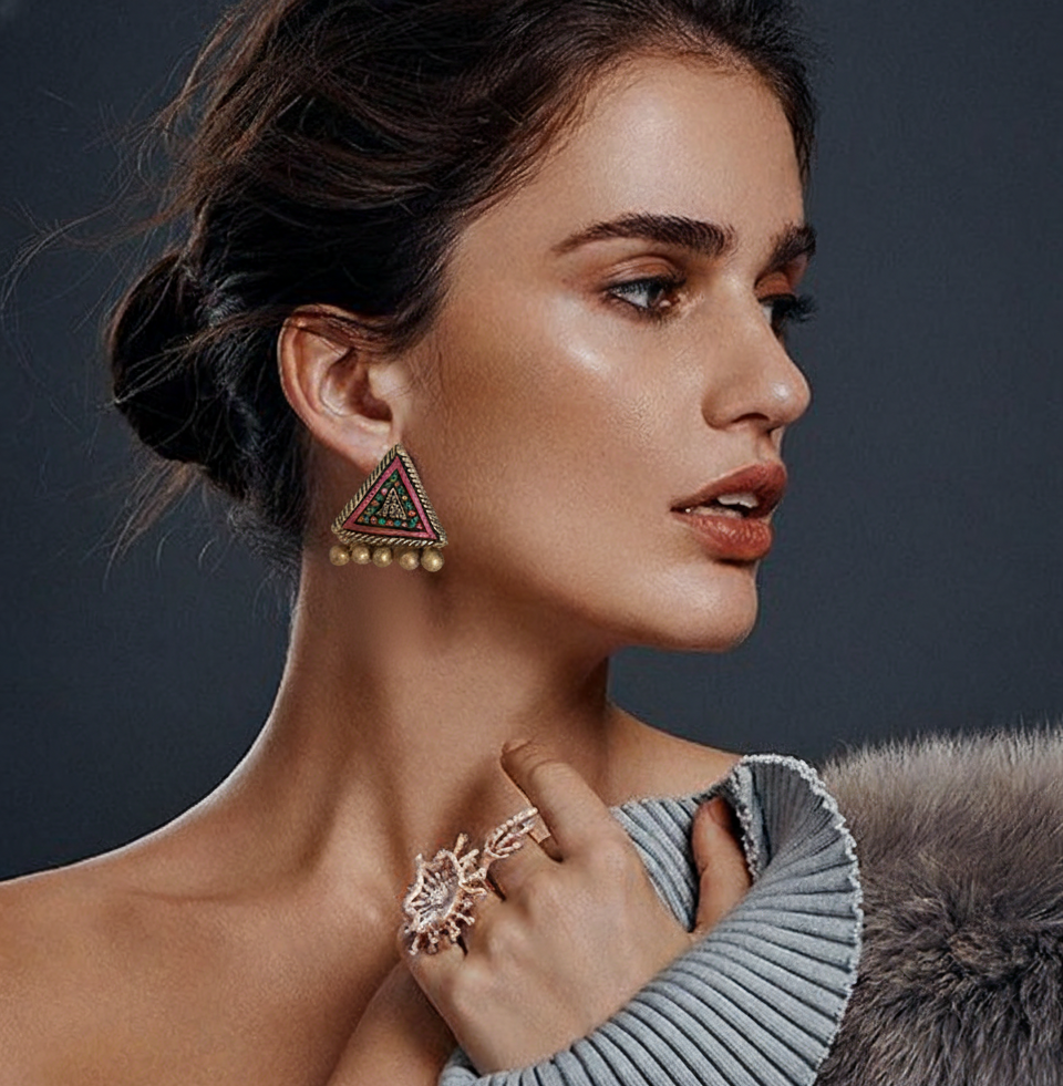 Bold in spirit yet refined in scale, the Vanté Mini Chandeliers bring statement elegance to a compact silhouette. Handcrafted in terracotta, these earrings are inspired by classic chandelier designs, reimagined for modern festive and fusion styling.