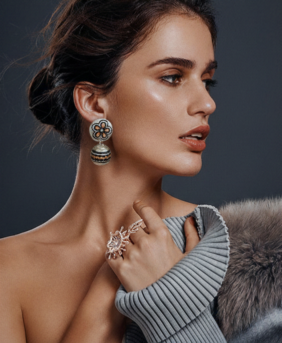 Whether styled with minimalist outfits, elegant ethnic wear, or modern fusion ensembles, the Velisse Charm Earrings bring a refined statement of handcrafted luxury soft, graceful, and unmistakably elegant.