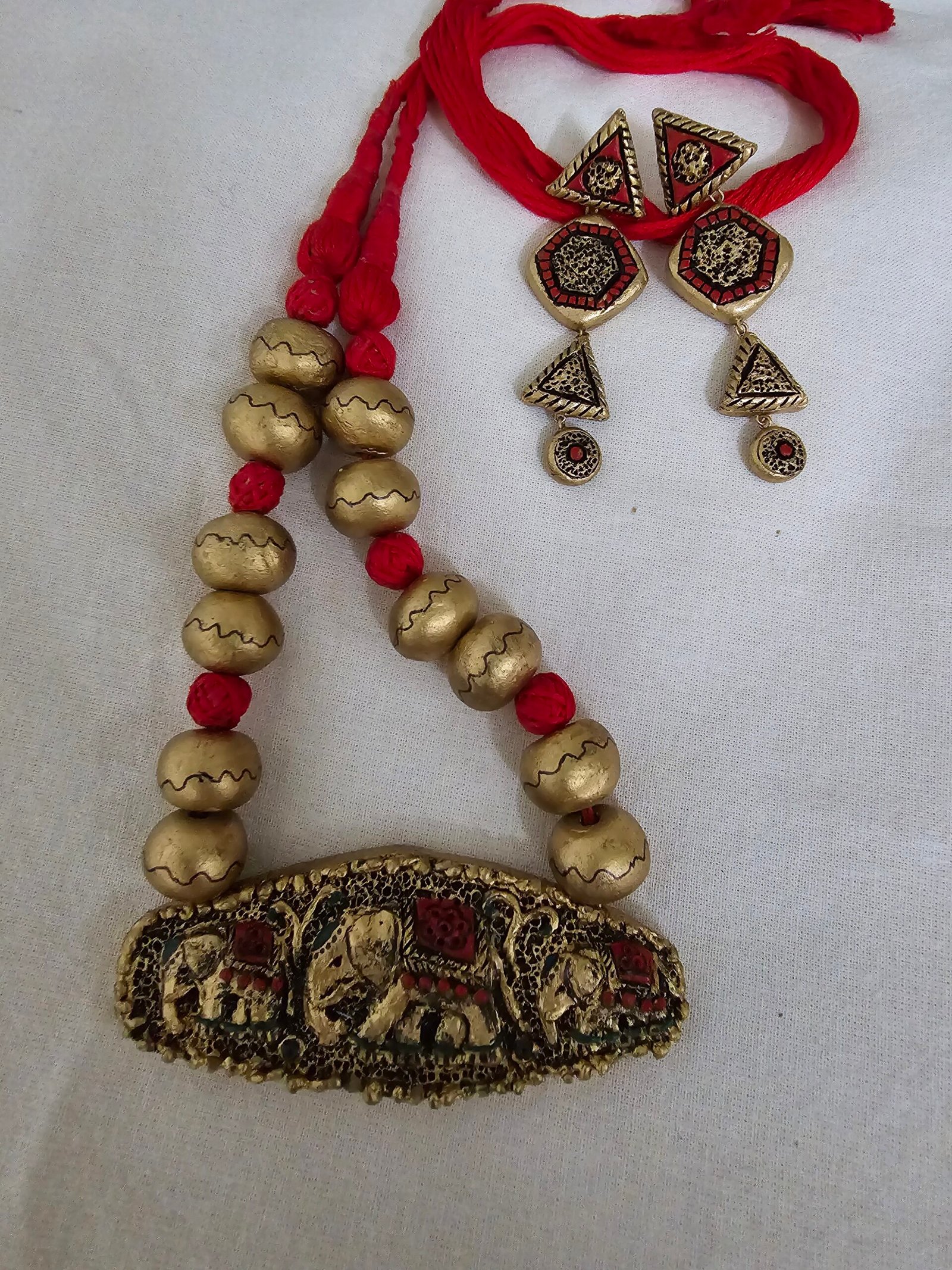 Designed for comfort and adjustability, the necklace comes with an adjustable cotton string at the back, allowing a customizable fit while keeping the lightweight elegance of terracotta jewelry intact. Each piece is artisan-crafted, showcasing subtle variations and textures that reflect the authenticity and skill of handcrafted terracotta artistry.
