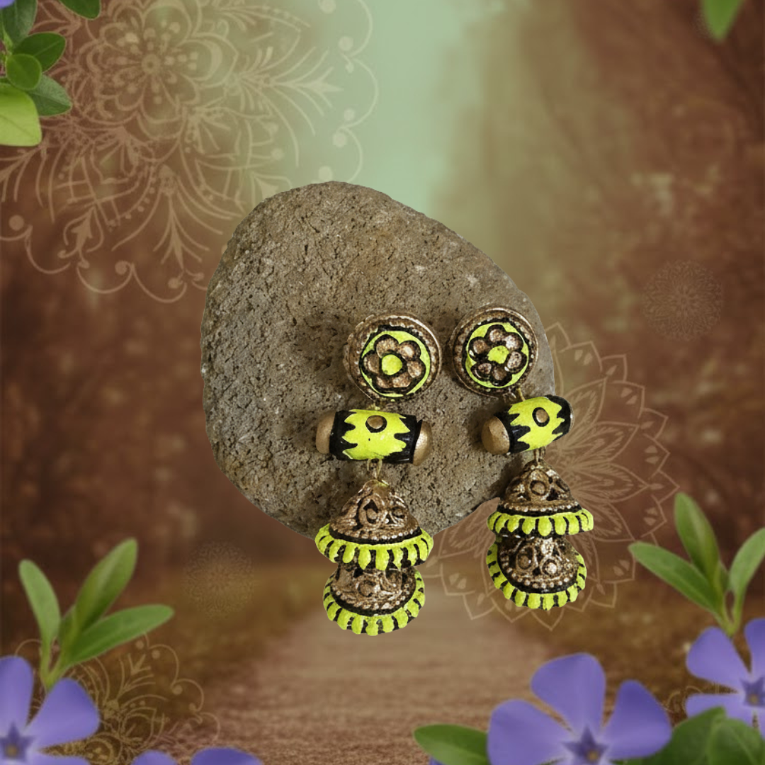 Handcrafted sophistication, Handmade earrings highlighting skilled terracotta craftsmanship.